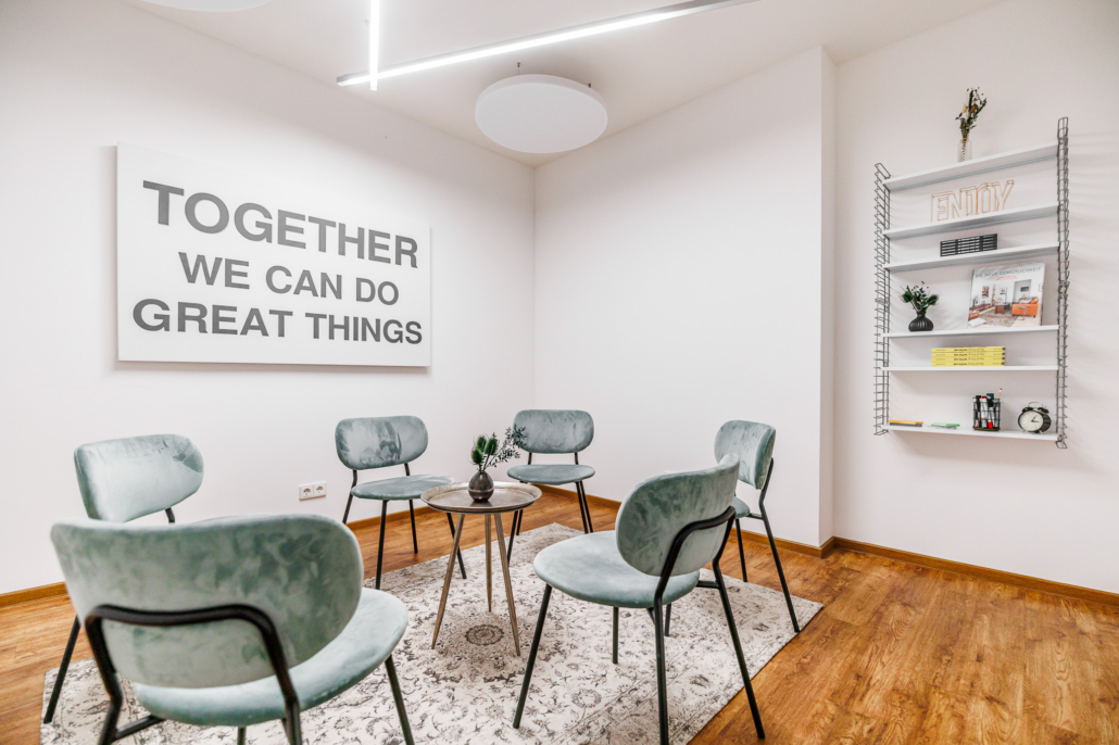 Whiteboard, ein zubuchbares Extrazimmer sowie die stylishe Tee- und